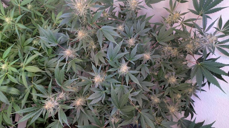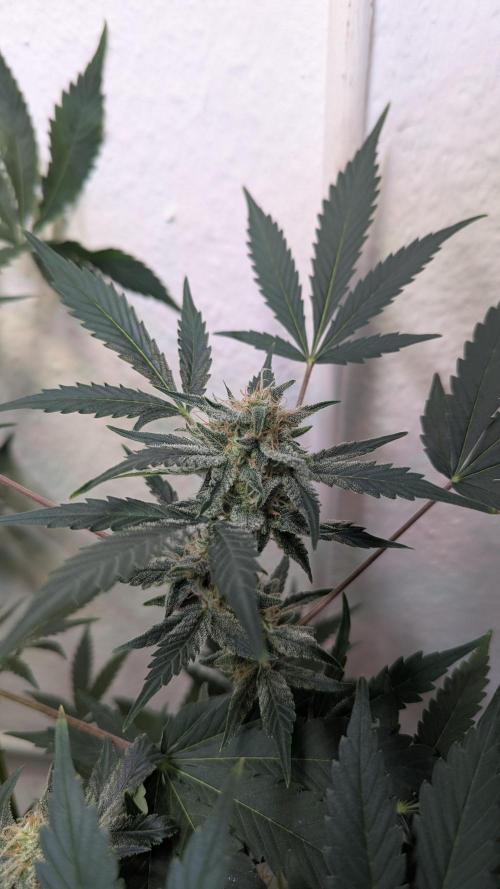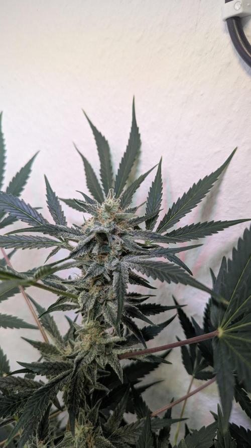 Aircoholic The way she's growing makes me super happy. She's looking healthy with vital growth, bulking buds and a nice aroma, reminiscent of Cheese Auto in that phase. Her leafs are pretty dark green, which looks really cool, but is also a sign of high Nitrogen in the soil and the plant.