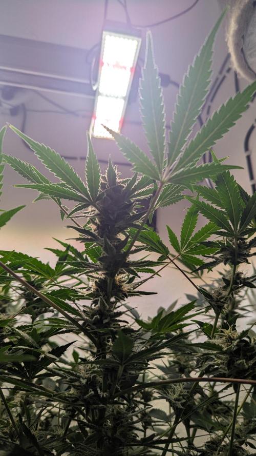 Aircoholic She's in full flower now, and still stretching upwards. She's producing the first trichomes, but no aroma just yet. Furthermore, she's responding very well to lollipopping and the first dose of ACT, and overall just looking beautiful. Not much more to report for this week.