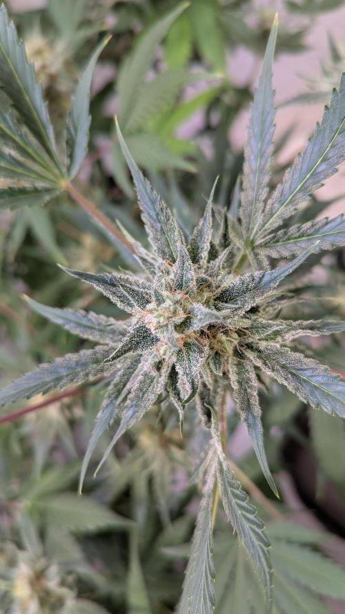Also, she's pretty generous with the trichomes and keeps adding them where ever she finds room for them. The aroma is pretty nice as well, but still has a kind of early flower smell to it, but this is also changing daily.