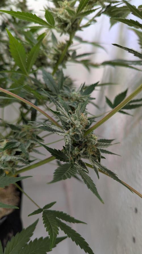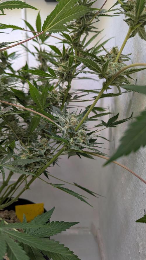 Aircoholic She's in full flower now, and still stretching upwards. She's producing the first trichomes, but no aroma just yet. Furthermore, she's responding very well to lollipopping and the first dose of ACT, and overall just looking beautiful. Not much more to report for this week.