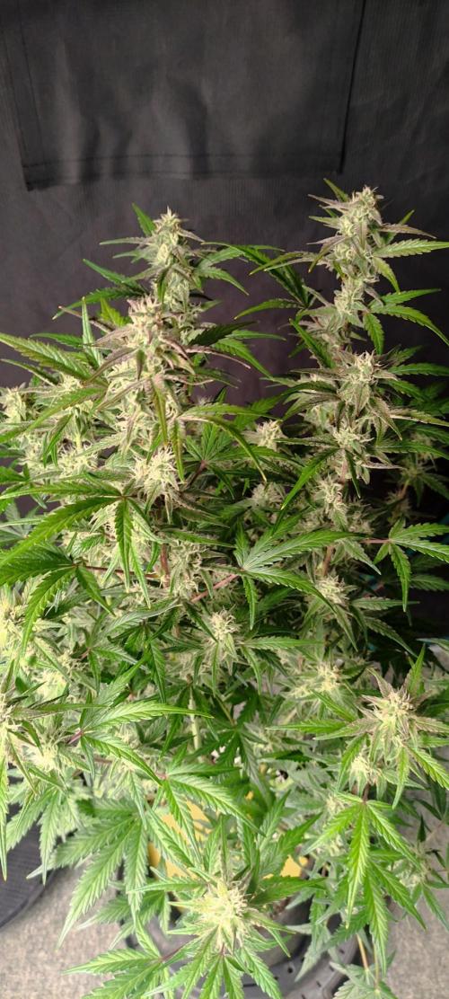 GrowerBaal She stopped stretching the last week and has now 79 cm height. She is doing fine and her buds grew. Probably because of the cold weather outside and the temperature drop in the dark phase in the tent, some leaves are starting to become purple.