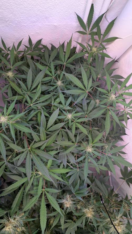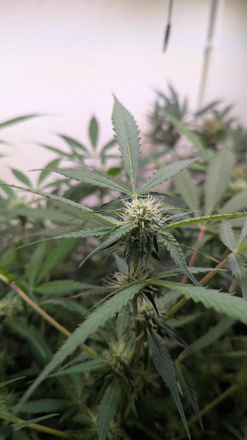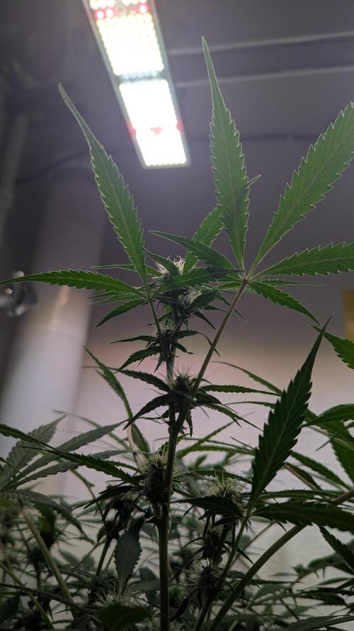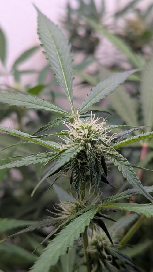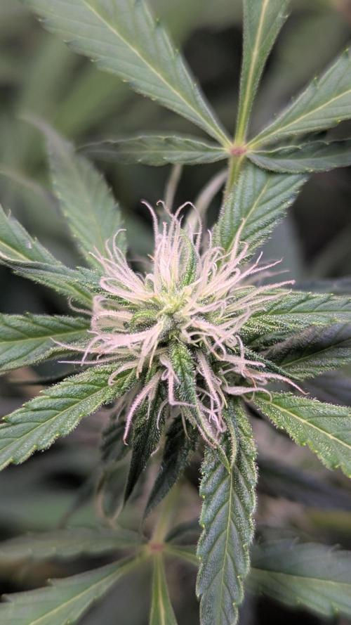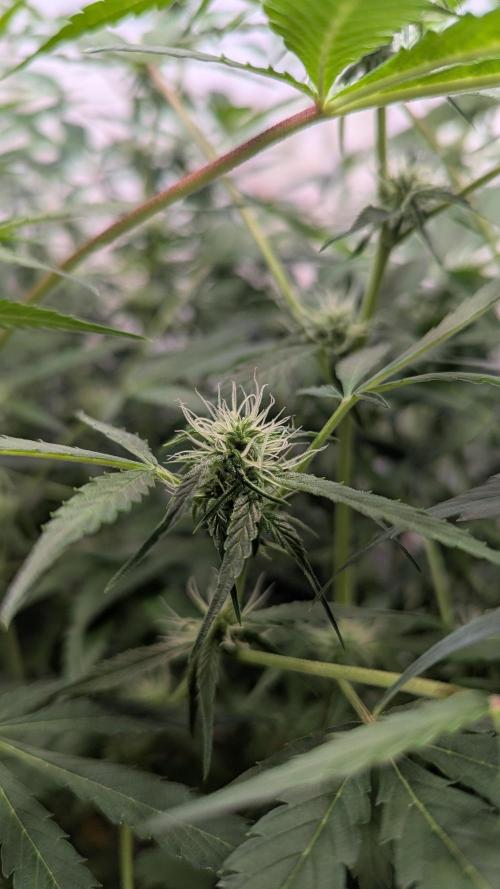 Aircoholic She's slowly waking up now, and starting to stretch. She's looking super healthy and showing lots of vital growth. Her flowers start forming, not bulking yet, but already pretty to look at. I'll do some light defoliation and lollipopping this week to give her some space and improve air circulation.