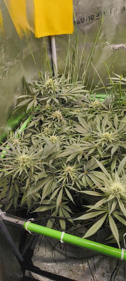 This week wasnt that action-packed.I built up a Scrog net with a vivosun frame and some wire i found at home (actually those little pieces of wire were supposed for lunch bags) to rearrange the Branches a bit and also control the height of the girls🍀 My aim is a more even cannope but also to give the LT more Space,so i bend the branches of the Wappa more to the left. The CSH is more left leaning anyway so that there was a large gap between her and the Wappa which i closed. Further i lollipoped the plants for now.i will hold an eye on the development of the girls and see if i had to defoliate more. I also removed some weaker Branches.My Goal is to have bigger and more uniform quality Buds,not a big yield.