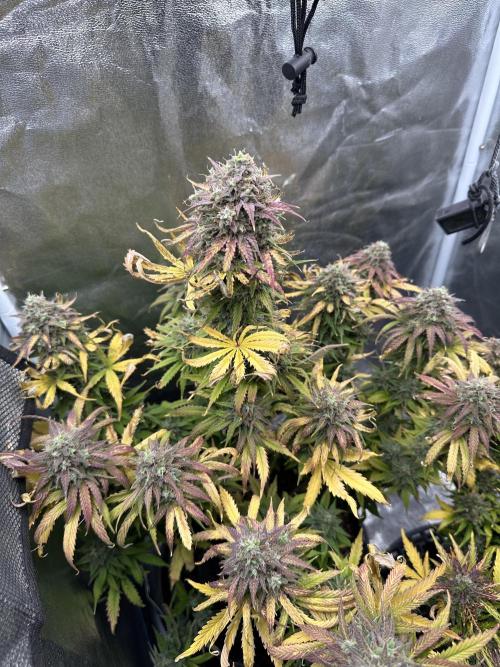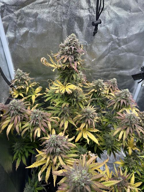 Had to mass defoliate this week for light penetration. Slight branch bending on the Skywalker x Toof Decay