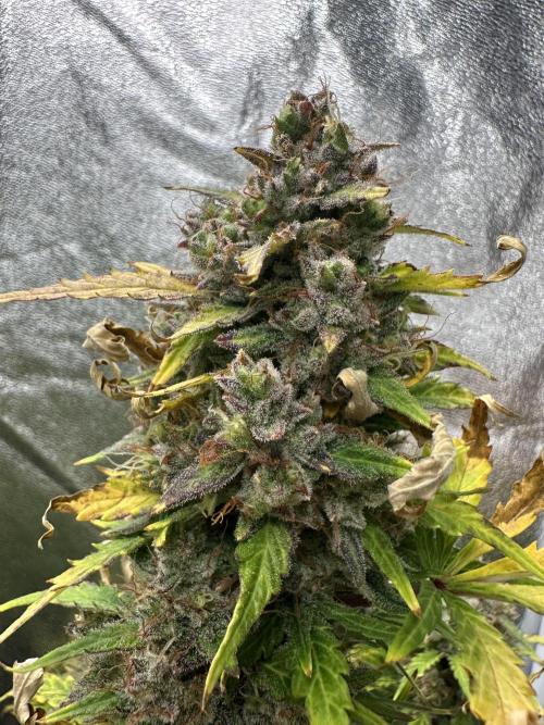 InsideAz Week 9: (9/24-10/1) She’s almost ready, smells disgusting in a good way and the nugs are so frosty. My best grow of this strain so far. Maybe a week or two left depending on trichomes It’s been doing (what I consider to be normal) the unwrapping thing where in the last 2-3 weeks all my autos usually shed used up or small and unneeded leaves. Leaves I’ve usually neglected bc I don’t like causing unnecessary stress to autos. Either way I like it, gives me something to do and provided light to lower bugs that need it for the last couple weeks as the whole plant matures. I could be just growing them way wrong but they usually turn out pretty good and flavorful. Anyone else experience this?