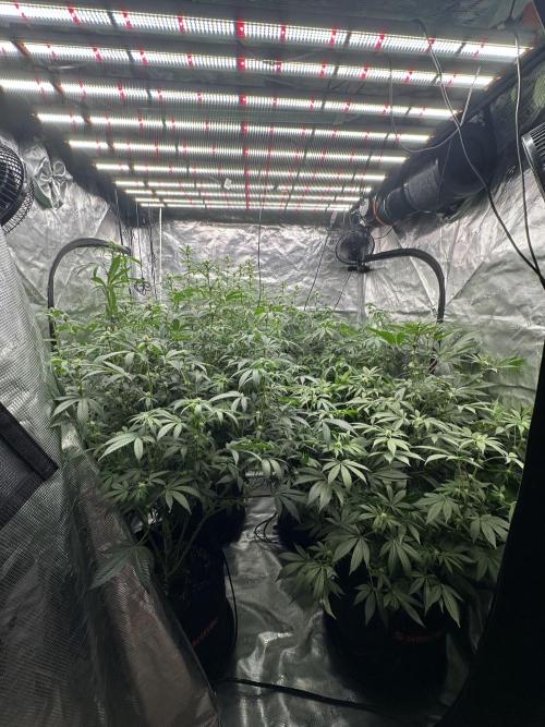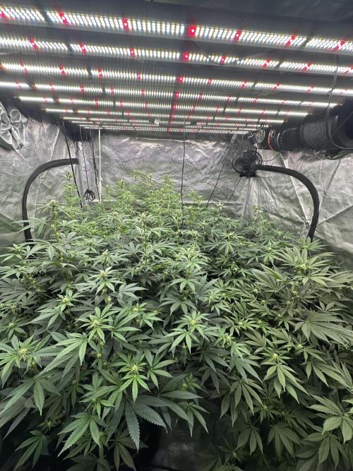 Had to raise the lights a couple inches as most plants were showing signs of light burn. Still have a couple available inches to move the light upward if I run into this again. Also hella branch tucking, it’s a daily task to check on and redirect branches/leaves for optimal growth during this stretch.