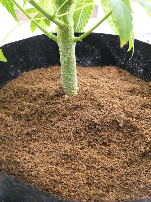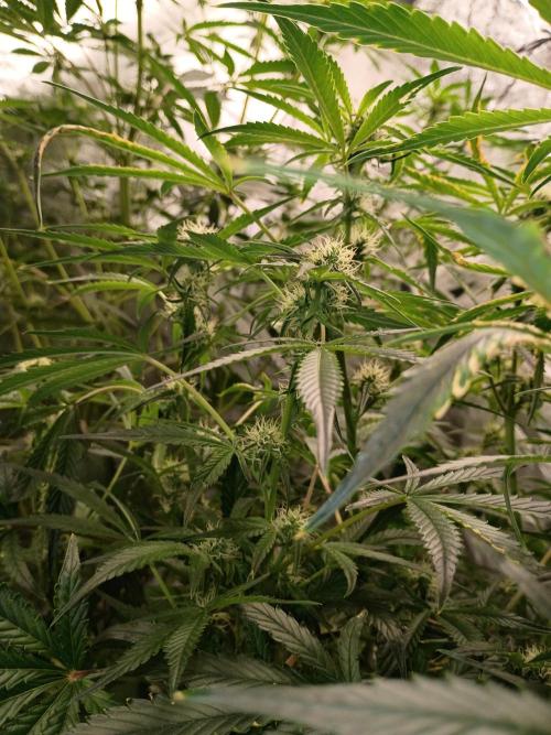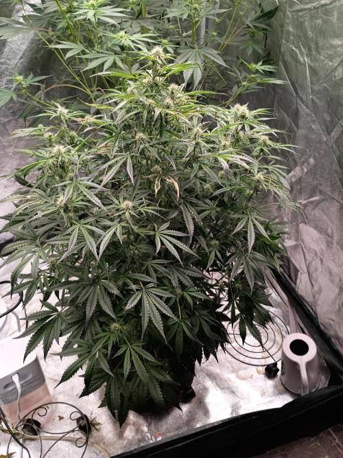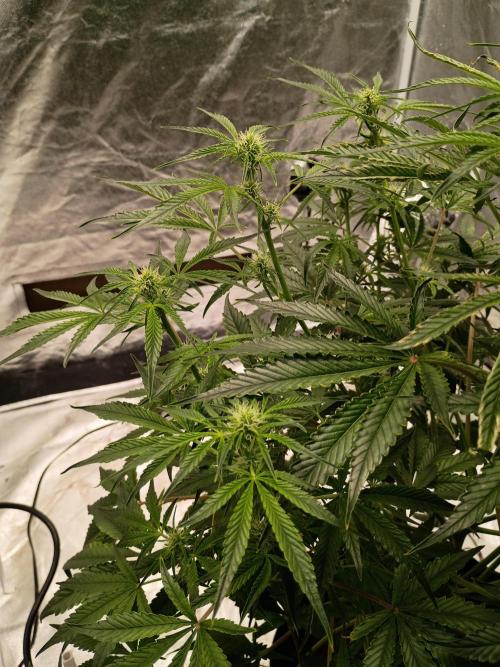 Mrdub This girl is starting her flowering and she is a little smaller but still stretching and looking absolutely fantastic stalk getting really thick white pistols starting to develop the mycos has really got these roots going water twice a week then one a week with a recharge tea so on to the next week