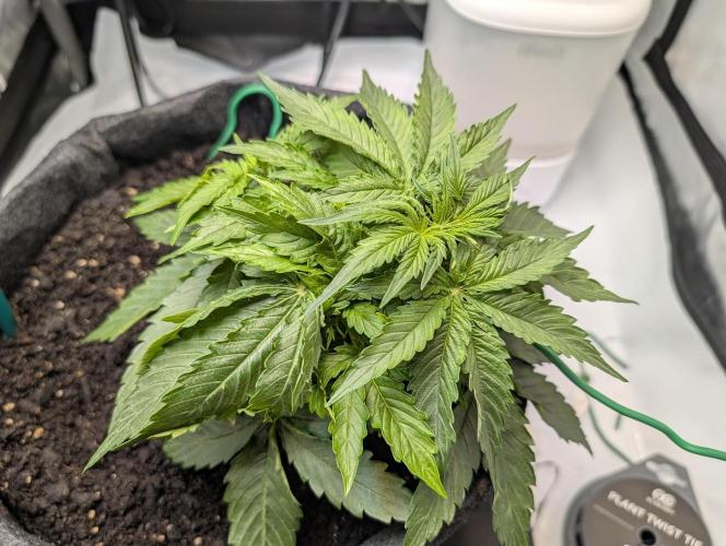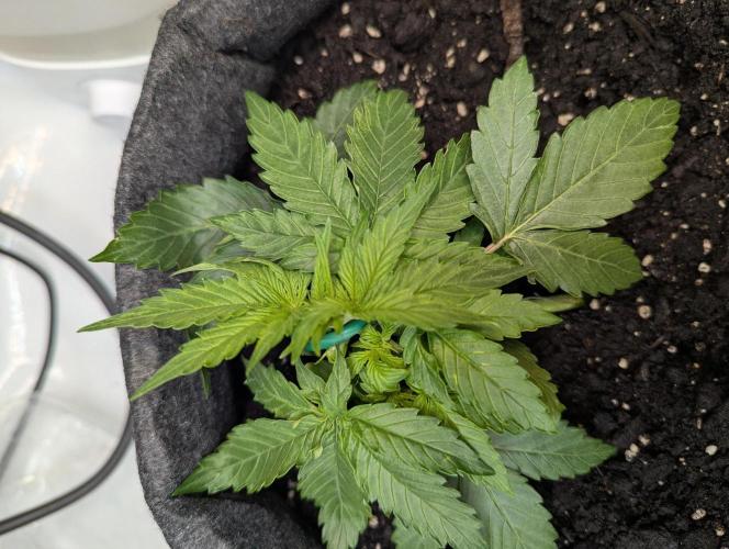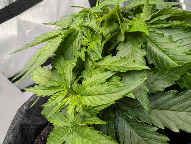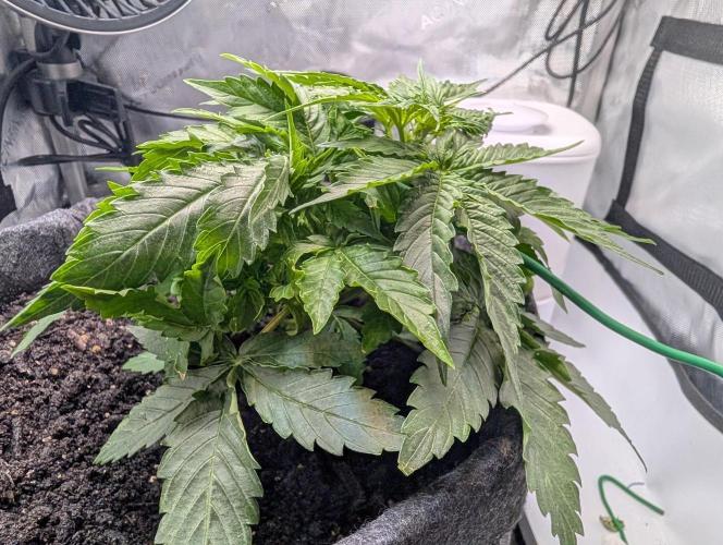 Seems like I overdid grow nutes, or didn't flush when I should have, but it had some minor event when the fan leaves started to claw very visibly. Did some flushing and cut the grow nutes completely, seems to have recovered in a couple of days.