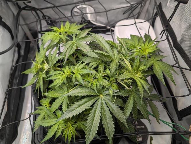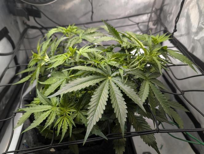 Ololollllo Seems to have entered pre-flower to early flower, attached the trellis net to do ScrOG
