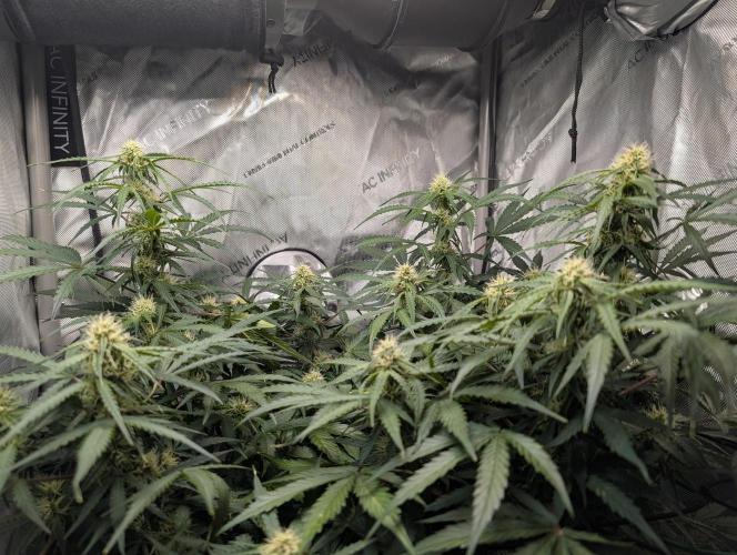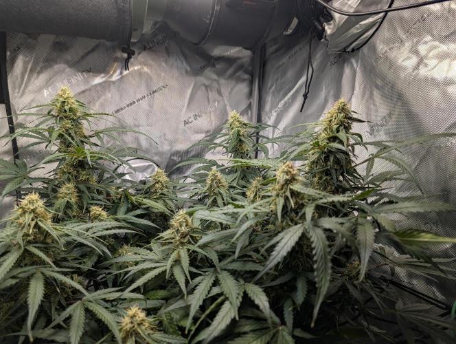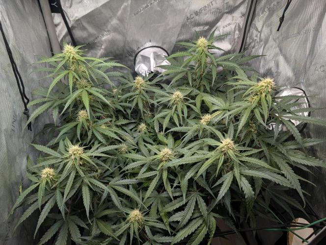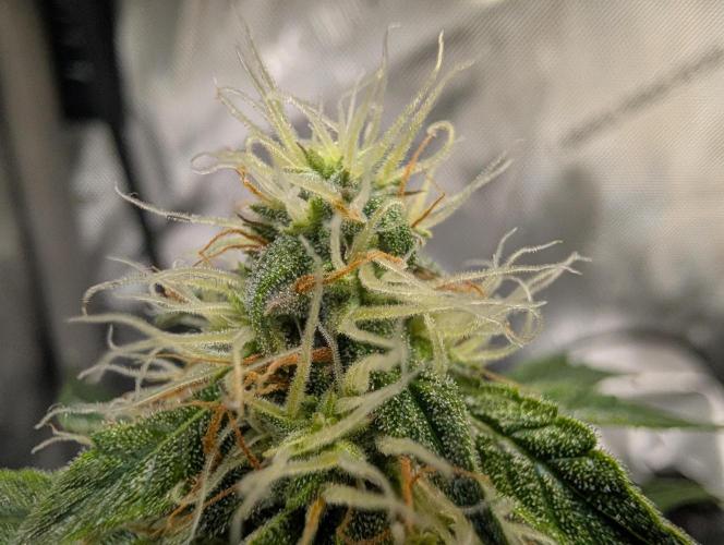 Ololollllo She is maturing fast, trichs are still mostly clear but some milky ones formed too. I've reduced the nutes, as the EC of the runoff kept being over 2.