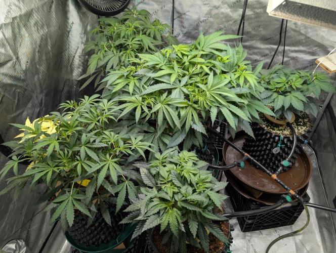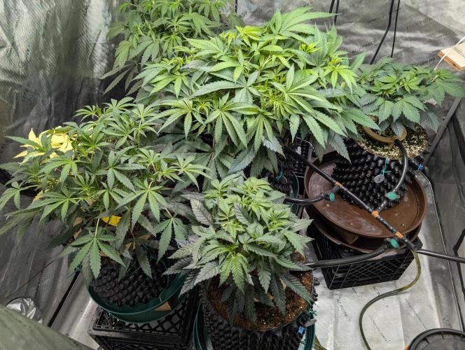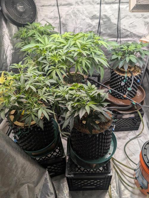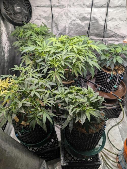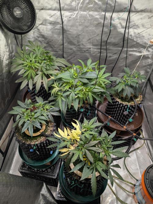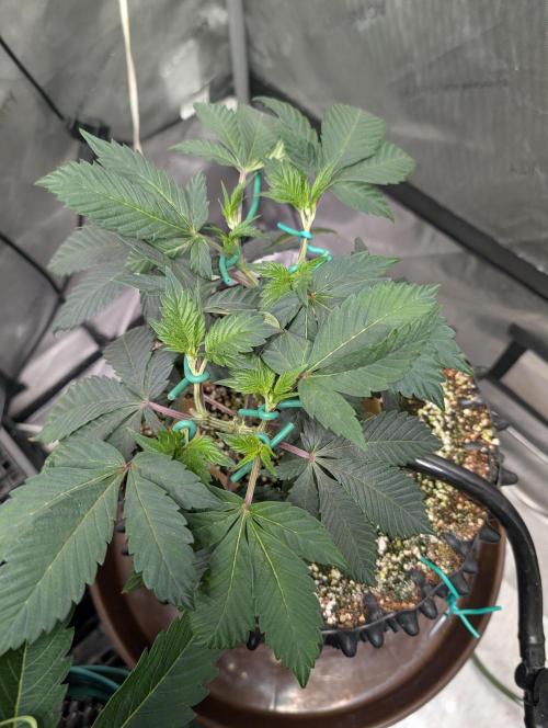 Canna96 This week went great, I did some low stress training as I am just working on keeping all the tops as level as I can. I am planning to veg for between one and two weeks and then flip to flower. Stay safe and Blaze on.