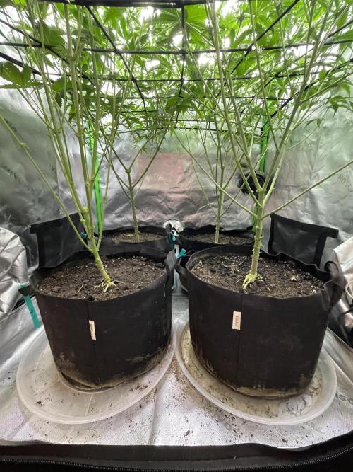 Zachn Day 54, flip lights to flower, applied trellis net, 3tbsp of Gaia green all purpose and power bloom for each plant, 15tbsp of worm castings for each plant