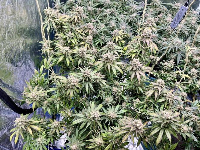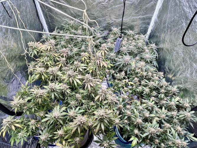 Clean setup ! Defoliation looked like it was done precisely and much needed for those bud sites. Good luck !