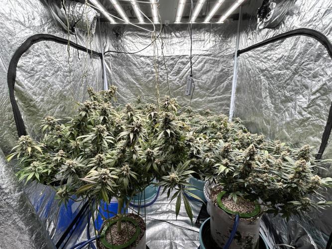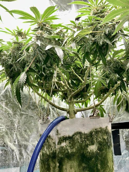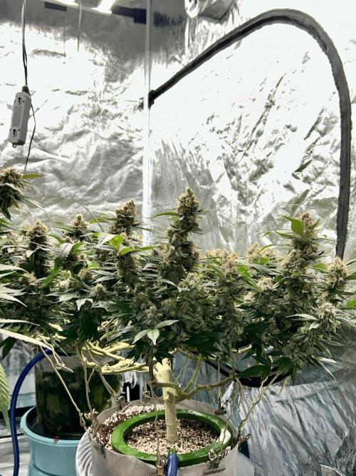 Blueherb420 Ten days have passed since the last update. The plants have grown taller, and their leaves have become lush. I am considering defoliating them a little tomorrow. There is now a height difference between the strawberry lemonade plant and the others. Therefore, I placed the shorter plants on a platform to even out the canopy. I always hurt my back when watering, so I introduced the Hydro Halo. Watering has become easier. NPK: 8-16-20 DLI: 30–35 PPFD: 600–750