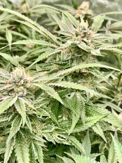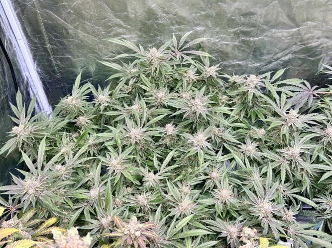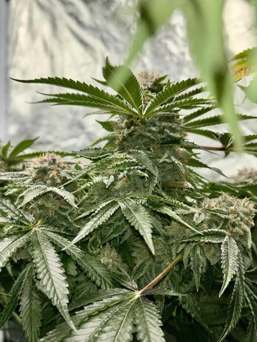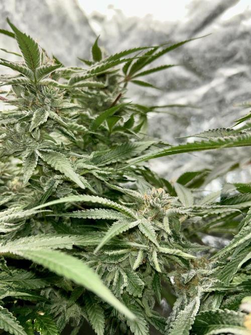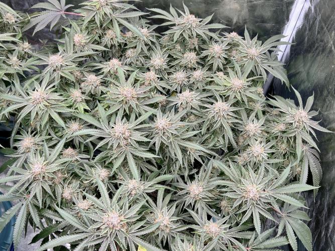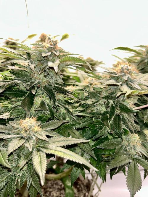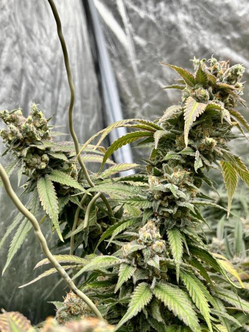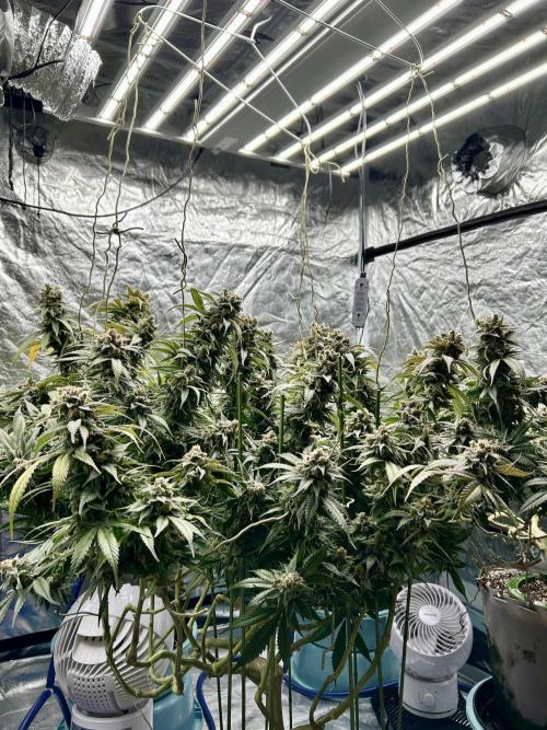 Blueherb420 It's been a week since the last update. All the plants are developing stronger scents. SL: The strawberry scent is emerging. The stakes couldn't support the weight of the buds, and when the pots dried out and became lighter, they started tipping over. So I suspended the buds from above. Fox tails have formed, so the light was probably too strong. VF: It's growing steadily and developing the unique scent of this variety. I absolutely love this scent. BM: They've become hermaphroditic, but no new bananas are visible yet, and they seem to be doing well. They smell like lavender and citrus, a very pleasant scent. I can't wait to smoke them. IX1: Flowering is a bit slower than the other plants. Harvest will likely be 1-2 weeks later than the others. The scent is tropical, like mango and pineapple. IX2: The buds are very large and dense. This gene needs to be kept. The scent is also very strong, with the same tropical flavor as IX1.
