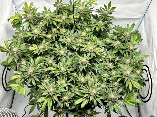 Blueherb420 It has been 7 days since the last update. ・I performed defoliation at the beginning and end of this week. ・I removed only the leaves, leaving all buds intact. ・I feel there are too many main colas, so I'm considering reducing the number of main colas starting next time. ・NPK = 8:16:20 DLI: 32-35 PPFD: 750-900