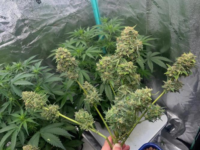 EazyRider I have harvested the CBD White Widow in the mini pyramid, looks to be at least two ounces of stinky lemon weed. The two SMQR look fabulous lots more leaves removed and the light getting in has helped them to bud all the way down. The Mango Isle is a little disappinting in size because the last two were very tall but the quality is there.