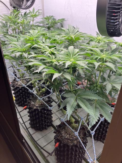 loomerlope Plants start to recover after their calcium deficiency, but due to that growth got stunned somewhat, so I have to extend the vegetative phase for about a week. DLI is ~30 and pH was between 5.8 and 6.2. I also removed some leafs and did the final topping so all plants except 1 have 8 tops now.