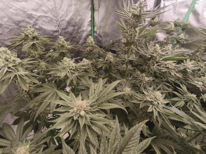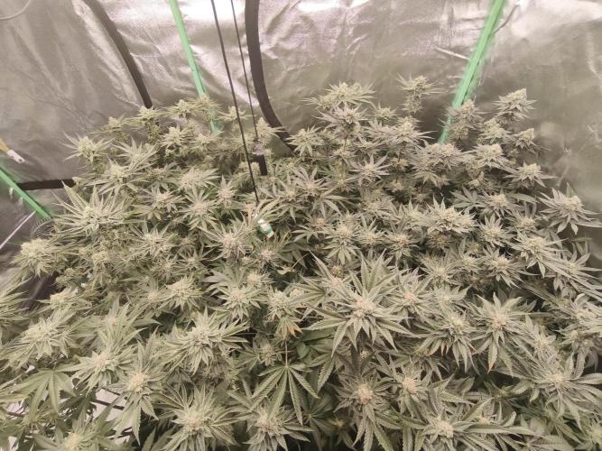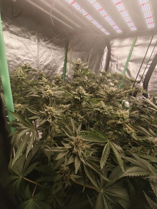 # Last day of week 4 after flip to 12/12. Plants are drinking like crazy and growing very beautiful.