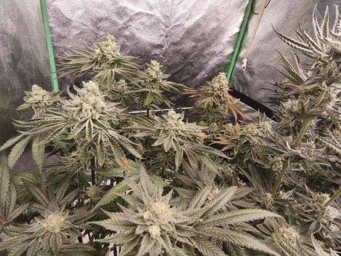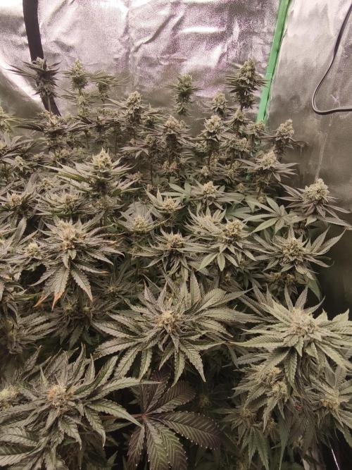 Jessi576 👉 Week 6 Bloom 👈 👉 Week 11 Overall 👈 👉 13.10.2025 - 19.10.2025 👈 👉 Days overall : 64-70👈 👉 Days bloom : 36-42 👈 👉 Update 15.10.2025: # Buds are currently developing perfectly # Plants got their last adjustments in light intensity and nutrient amounts this week # Temperatures will be lowered around 2 degrees in daylight starting in the next week until harvest. 👉 Update 19.10.2025: #last day of Bloom week 6 #heavy defoliation day 42 Bloom #uploaded pictures after defoliation