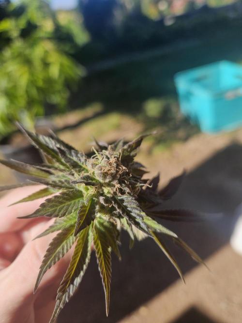 Mannirumpel420 Sie genießen nocheinmal die Sonne.Ich stelle sie so oft wie möglich raus,damit der Wind Schimmelbildung verbeugt.Eine Pflanze hat schon sehr dicke Buds,jedoch eine geringere Trichomproduktion.Die andere hat kleine kompakte Blüten,welche mit trichomen übersät sind.In ungefähr 2 Wochen sollten sie bereit zur Ernte sein.