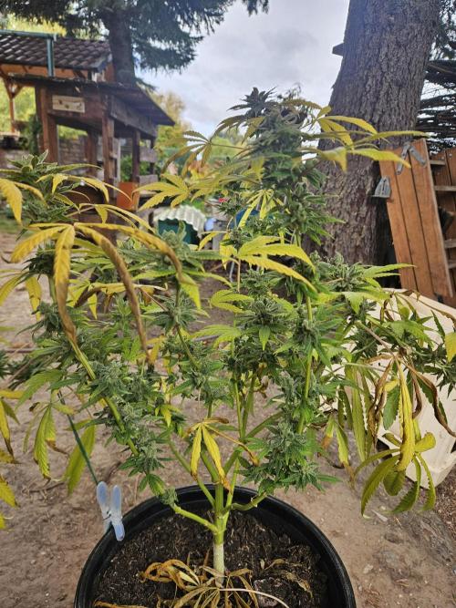 Mannirumpel420 Sie genießen nocheinmal die Sonne.Ich stelle sie so oft wie möglich raus,damit der Wind Schimmelbildung verbeugt.Eine Pflanze hat schon sehr dicke Buds,jedoch eine geringere Trichomproduktion.Die andere hat kleine kompakte Blüten,welche mit trichomen übersät sind.In ungefähr 2 Wochen sollten sie bereit zur Ernte sein.