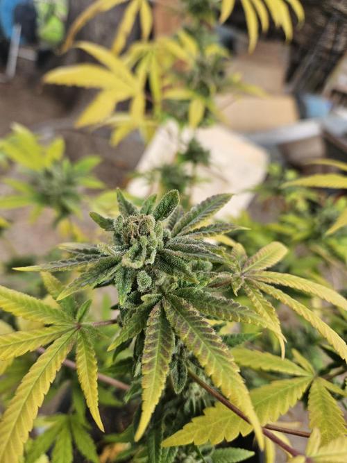 Mannirumpel420 Die Terpenproduktion der einen Pflanze ist verrückt.Sogar die Fächerblätter sind teilweise mit ihnen bedeckt.Ich bin gespannt wie sie sich entwickeln und ob die geringen Temperaturen ihnen Schwierigkeiten machen.Als ich die Erde umgegraben habe,fühlte sie sich etwas kalt an...