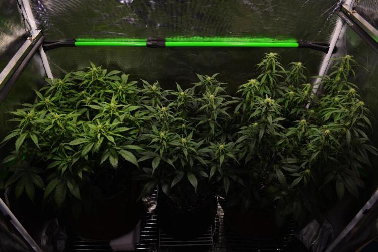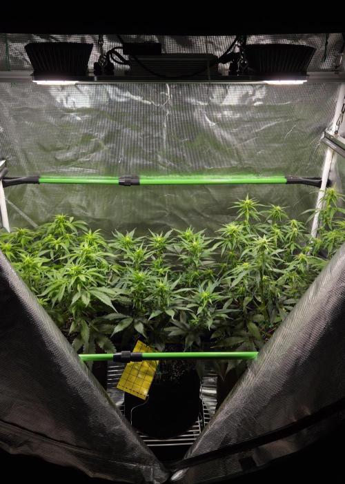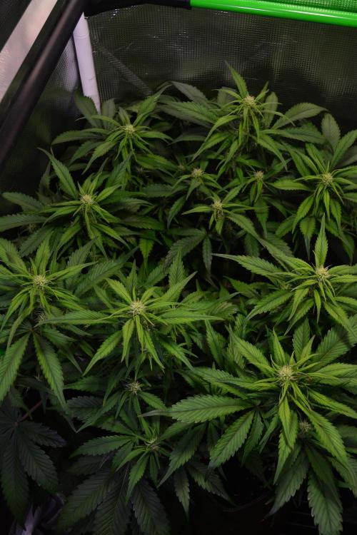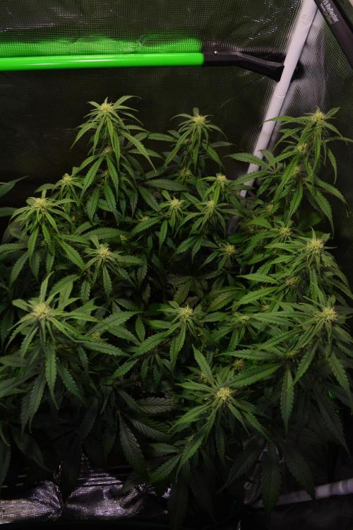 Anna-J 🌸Week 3!🌸 The last couple of weeks have been quite warm outside, which means quite warm inside! My light schedule of 20/4 has the lights on from 6pm to 2pm the next day. I've been trying to take advantage of the cooler night air and trying to keep the lights off during the hottest time of the day. Despite that, I've been running my portable air conditioner each day starting when the lights turn on at 6pm. When the AC is on, the tent intakes air passively from the cool room. At about 10 or 11pm i turn the AC off and switch to outdoor air intake, which lasts throughout the night, until 8 or 9am the next day, when i turn the AC back on and switch back to intaking air from the room itself. This has been helping me keep my temperatures in the tent within range, especially as i'm increasing the light intensity, causing the lights to run warmer. This week i'm also going to figure out what sort of training methods i'm going to use. I'm considering topping Plant #3 and possibly Plant #2, as they seem to be a bit taller than Plant #1. Plant #1 will likely just be getting some LST. Day 15: - Increased the light intensity of my HLG Elite 360 fixture. Last week the overall LUX levels were about 16,100. - LUX (Total): 17,100 - Temp: 79-82F - RH: 68-72% - I added water to the saucers at the bottom of tent to help bring the humidity levels up inside the tent via natural evaporation. I've found that i only needed to increase the humidity about 5-10% to be with the VPD range that i'm aiming for. I do have a humidifier that i would have used if i needed to make a more drastic increase but so far, the evaporation from the 3 saucers seems to be working well. Day 16: - Increased the light intensity of the HLG Elite 360 fixture. - LUX (Total): 18,500 - Temp: 78-81F - RH: 65-75% - After about 14hrs of the increased light levels, i'm seeing a little bit of leaf 'tacoing' and possible a little bit of leaf stress. I'll leave the light intensity as is for now and will continue to keep a close eye on the plants to see how they do. Day 17: - Soil feels dry up to an inch deep but the weight of the pot indicates that there's still some water in there so i'll wait another 24hrs to water - Temp: 74-81F - RH: 58-73% Day 18: - Watered each plant with just under 1L of dechlorinated tap water mixed with approximately 3.5ml per gallon of Remo Nutrients' "Micro" & "Grow" and around 2.5ml per gallon of "MagNifiCal" and "VeloKelp". This resulted in a nutrient solution measuring 440ppm, which was then pH adjusted to 6.3. - Lowered the HLG Elite 360 light fixture by about 1". This increased the light level by about 1,500 LUX. - The light level at the soil was 19,000 LUX and at the canopy was about 20,000 LUX. - Temp: 75-81F - RH: 68-74% Day 19: - I topped Plant #3. It was the tallest of the three and had the biggest internodal length. - 8hrs after topping Plant #3, i also topped Plant #2. - Yesterday the plants were starting to exhibit what looked like slight over-watering symptoms. I adjusted my exhaust fan settings to reduce the humidity and to slightly lower the temperature. After about 12hrs, the plants had perked up. - Plant #3 is showing a bit more red/purple in the leaf petioles. I'm not 100% sure if this indicative of magnesium or phosphorous deficiency. I'm leaning towards magnesium though and may do an epsom salt foliar feed. - Temp: 74-80F - RH: 66-71% Day 20: - Plant #3 is really looking much more "leggy" than the other 2 plants. - Temp: 74-78F - RH: 65-70% Day 21: - I went ahead and topped Plant #1 today. It's the shortest of the three plants and the internodal spacing is very tight but i decided to top it anyways, so we'll see how it goes i guess! - Watered each plant with approximately 2L of dechlorinated tap water, mixed with 2.5ml/gallon of Remo Nutrients' "Micro", "Grow", "Bloom" & "MagNifiCal" and about 2ml/gallon of "VeloKelp". This resulted in a 505ppm nutrient solution that was then adjusted to pH 6.4. - Temp: 73-78F - RH: 66-70%