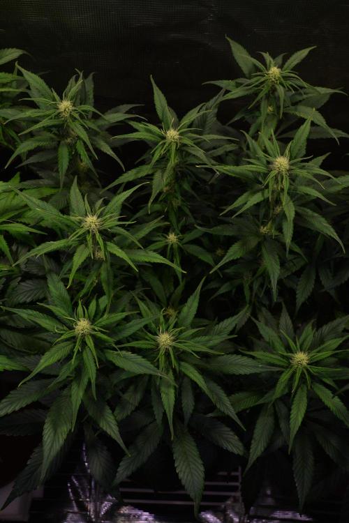 Anna-J 🌸Week 1🌸 Germination went very smoothly last week and these little girls seemed eager to enter the world! 🌱SUBSTRATE: - Pro Mix Organic Vegetable & Herb Mix (40%) - Black Gold All-Purpose Potting Mix (40%) - Canna Coco Professional Plus (10%) - Nursery Land Perlite (10%) I was intending to run three 7-gallon fabric pots but i seem to have misplaced one of them, so i ended up using one of my 5-gallon pots. I like to keep my pots elevated on wire racks, mainly for air circulation. 🌱NUTRIENTS: Remo Nutrients: - Micro - Grow - VeloKelp - Bloom - Astroflower - Nature's Candy - MagNifiCal 🌱EQUIPMENT: - Unit Farm grow tent, 2ft x 4ft x 6ft - HLG Elite 360 light fixture, containing 2 x QB96 Elite LED boards. Modified to replace the bluetooth controller with a manual dimming knob - Sunblaster 48" 6400K LED strip light (for veg only) - 2 x Sunblaster 24" 2700K T5HO fluorescent strip lights (for flowering only) - AC Infinity Cloudline T6 exhaust fan - AC Infinity 6" Carbon Filter - AC Infinity Cloudray S6 Circulation Fan - Toshiba 8000 BTU Portable Air Conditioner - Photone app - Dr. Meter pH Meter - HM Digital EC/TDS Meter ************************************************* Day 1: - The HLG Elite 360 light fixture is mounted approximately 36" above canopy. - LUX: 4,800 - Light schedule: 20/4 (lights on from 6pm to 2pm the following day) - The AC Infinity Cloudline T6 exhaust fan is set to turn on to it's lowest setting (10%) whenever the temperature reaches 82F or the humidity reaches 76% - Temp: 74-76F - RH: 67-70% Day 2: - I want to increase the temperature inside the tent a little bit so i've turned on the Sunblaster 48W LED strip light. It's hung just slightly lower than the HLG fixture, sitting at about 32" above the canopy. - LUX (Sunblaster only): 5,110 - LUX (HLG Elite 360 only): 3,700 - LUX (TOTAL): 8.810 - Added yellow sticky traps as a preventative measure for fungus gnats. I haven't seen any in the tent yet so it's just a precautionary measure at this point. - Temp: 74-81F - RH: 70-75% - VPD: 0.35-0.4 Day 3: - I turned on the AC Infinity circulation fan, set to 20% - Temp: 75-81F - RH: 70-75% Day 4: - Increased circulation fan speed to 30% - Temp: 74-81F - RH: 69-75% Day 5: - Increased circulation fan speed to 40% - Increased the light intensity of the HLG Elite 360 fixture - LUX (Sunblaster only): 5,110 - LUX (HLG Elite 360 only): 5,290 - LUX (TOTAL): 10,400 Day 6 - Temp: 74-81F - RH: 65-74% Day 7: - Watered each plant with approximately 200ml of dechlorinated tap water, pH adjusted to 6.65 - Temp: 75-81F - RH: 70-75%