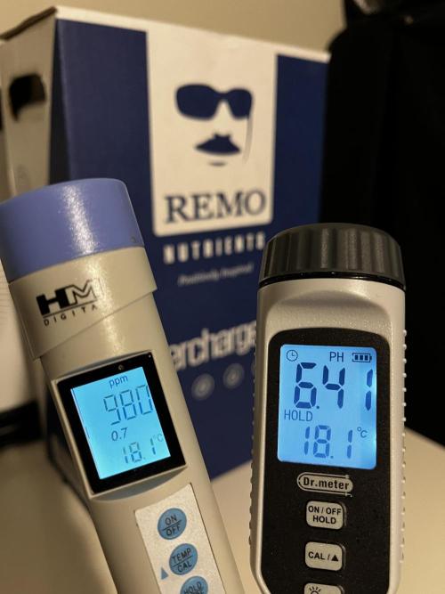 - The soil was still pretty damp from the heavy plain water flush last week but i wanted to get a bit more nutrients into my girls before their time is up. I split about 15 litres (4 gallons) of water between the 3 plants, with around 1ml/litre of Remo Nutrients' "Micro", "Bloom", "Astroflower", "MagNifiCal", "VeloKelp" and "Nature's Candy", resulting in a 980ppm solution that i adjusted to a pH of 6.41.
