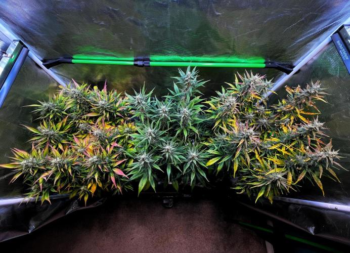 Since switching to flowering i've also been using a 24W Sunblaster T5HO fluorescent fixture at each end of the tent, which has helped bring the 4 corners of the tent up to a more even light level with the rest of the canopy.