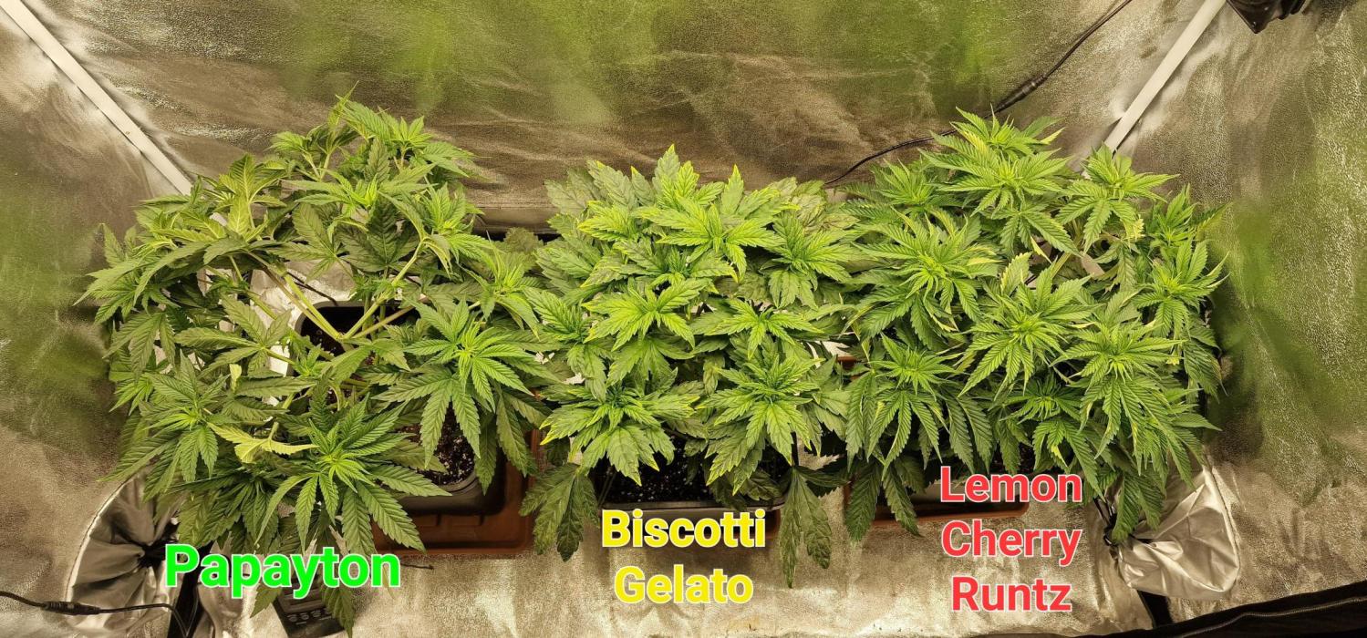 GhostTerpZ I've removed the Scrog net again because it's simply too small for the box and I think the plants will only grow better with Lst. Tomorrow it will be switched to 12/12 and fertilized for the last time with grow fertilizer. The BG, well, I like it but I also don't like it because I'm worried about a hermaphrodite due to the mutation, but I have to keep an eye on it. The Lemon Cherry Runtz already has two stigmas despite being 18/6. I think it got some autoflower genes from Fastbuds autoflower varieties somewhere. There's nothing wrong with the Papayton, it's grown perfectly from the start. All in all, unfortunately a problematic grow, but I've had worse plants. I think I was just unlucky because my previous plants from fastbuds performed very well