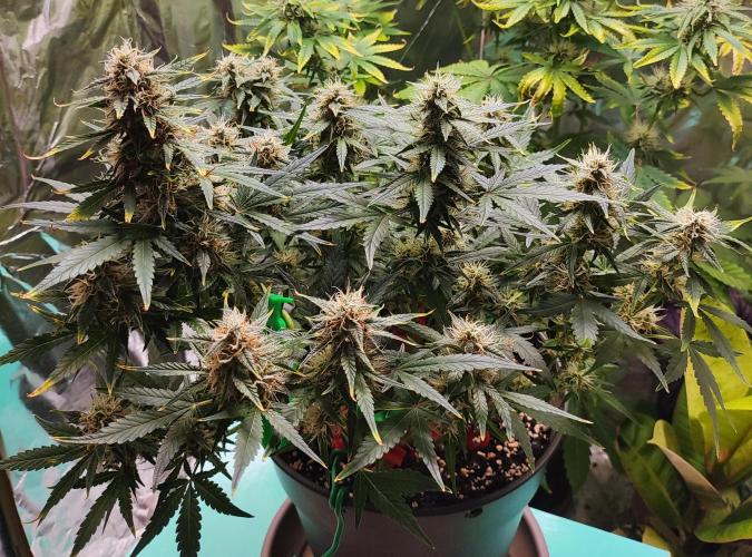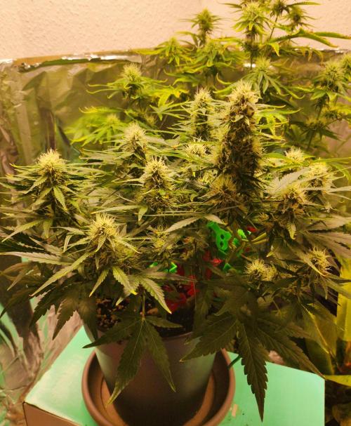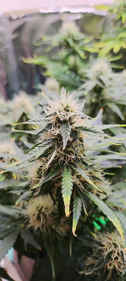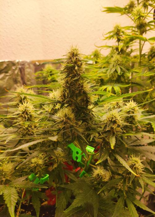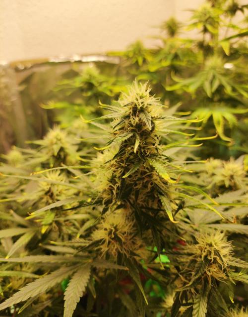 She obviously grew the most buds, which are also the biggest and most developed ones out of all plants. There are small signs of nutrient defiency showing at the tip of the leaves, so we adjusted the nutrient intake a bit further.