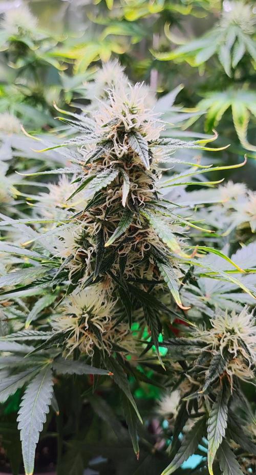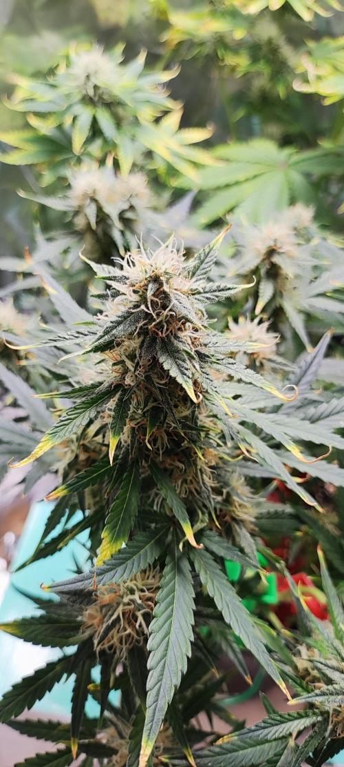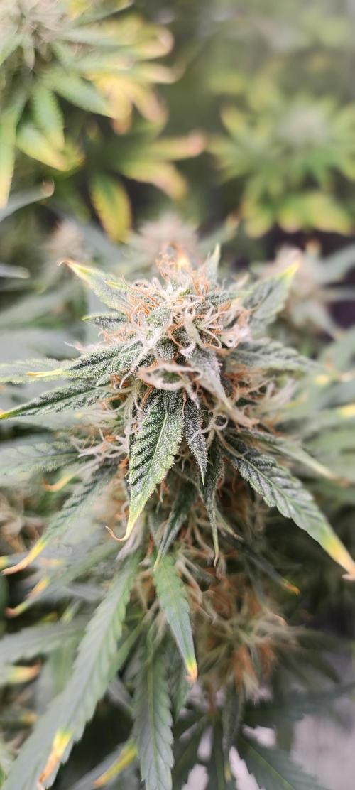 Her buds are visibly growing bigger and the leaves beneath them are slowly getting frosty! The smell is still dominated by a very sour, almost unpleasantly citrussy aroma.