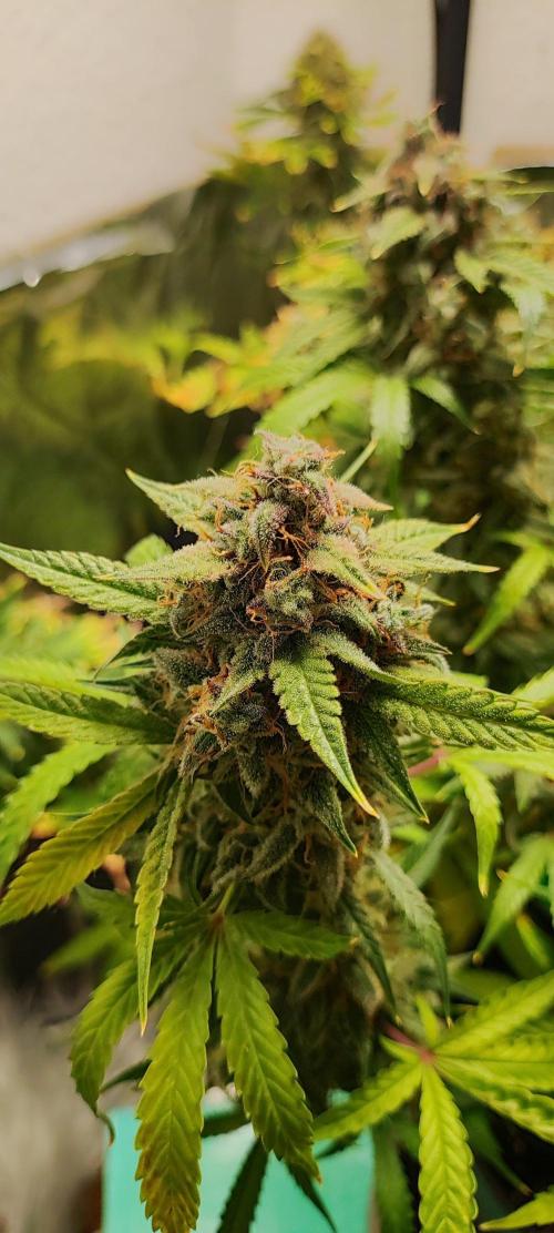 She is my absolute favorite of all of them! Growing some really thick buds right now along with super frosty leaves. Very excited on how big she'll grow until we harvest her.