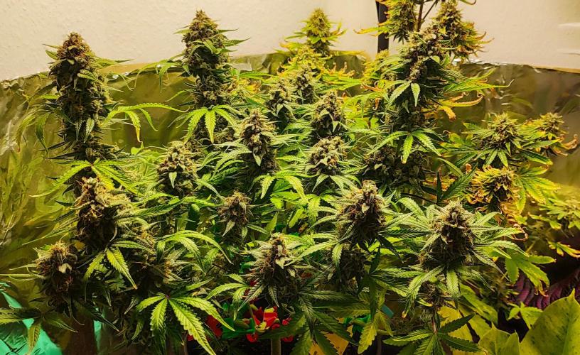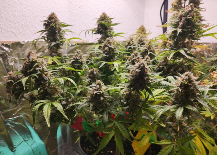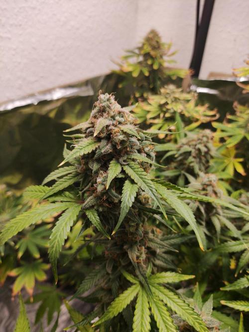 The ladies are looking fantastic, they have stopped growing in height and are focussing on thickening their buds. Definitly developing sugar leaves, especially #2 tried her best to catch up to her sisters and now she's actually the one with the most frosty looking leaves, which will also prove our thesis of her differentiating from the others due to genetics.