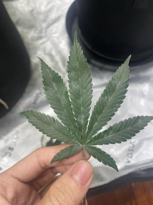 This week I noticed the first signs of powdery mildew (PM) 😬 — just a few small white spots on lower leaves and shaded areas. Immediately dropped RH and started preparing to treat it next week with Hydrogen Peroxide 3% (H₂O₂) foliar spray.
