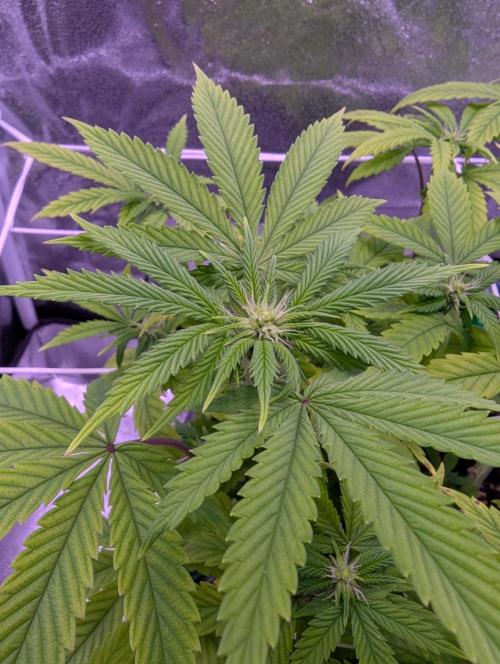 Theo_Rehtisch -die Lady wächst weiterhin sehr gut, keine Anzeichen von Über- oder Unterdüngung, keine Schädlinge, mittlerweile auch leichte Geruchs-Entwicklung