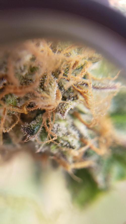 La planta se la ve bien, aunque nose si le faltara más agua pero he notado todos los días las hojas como caídas, pero bueno, los cogollos se van formando pero aun sin tanto olor.