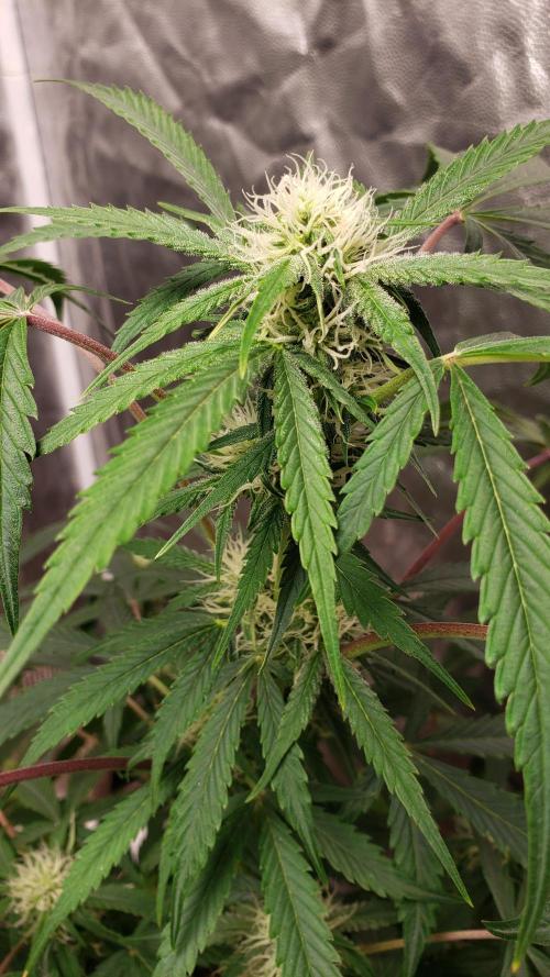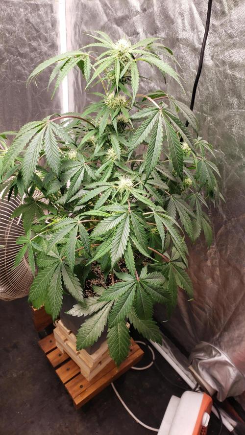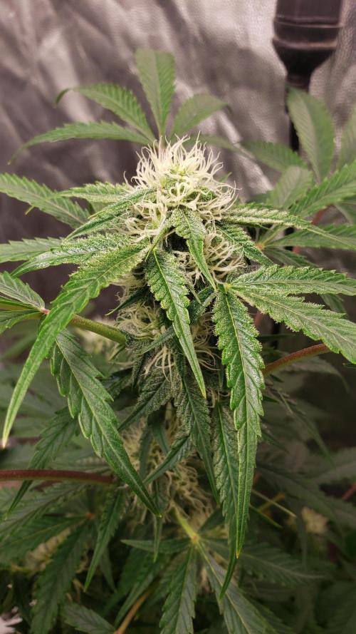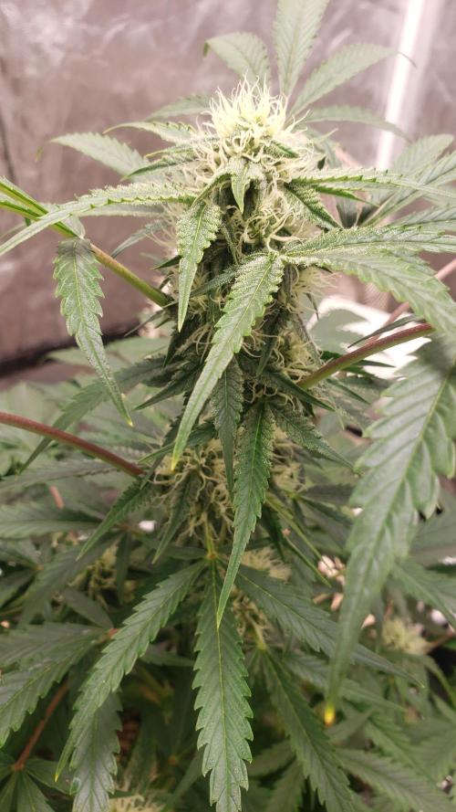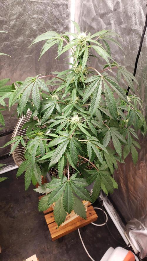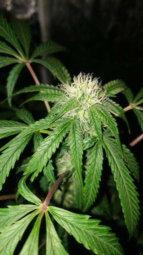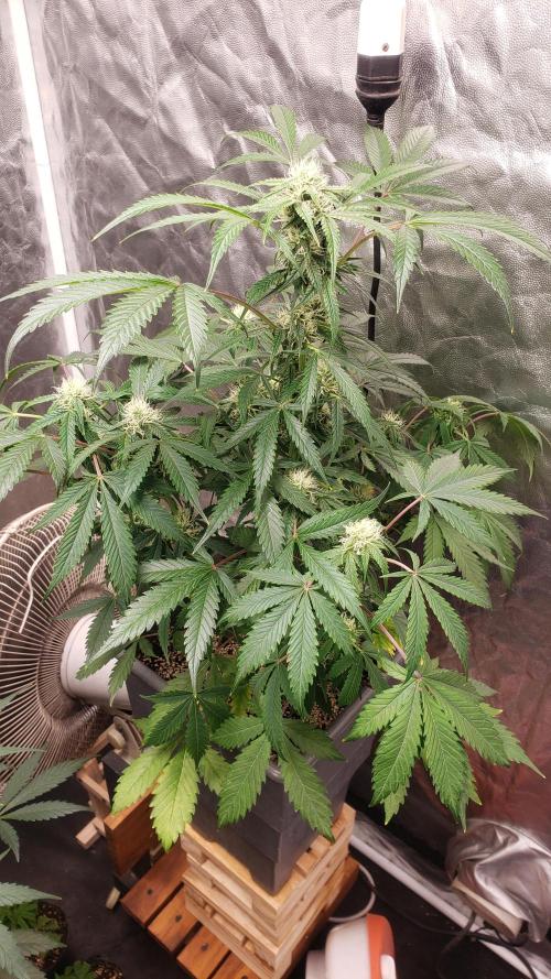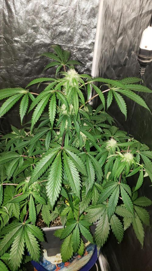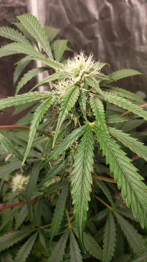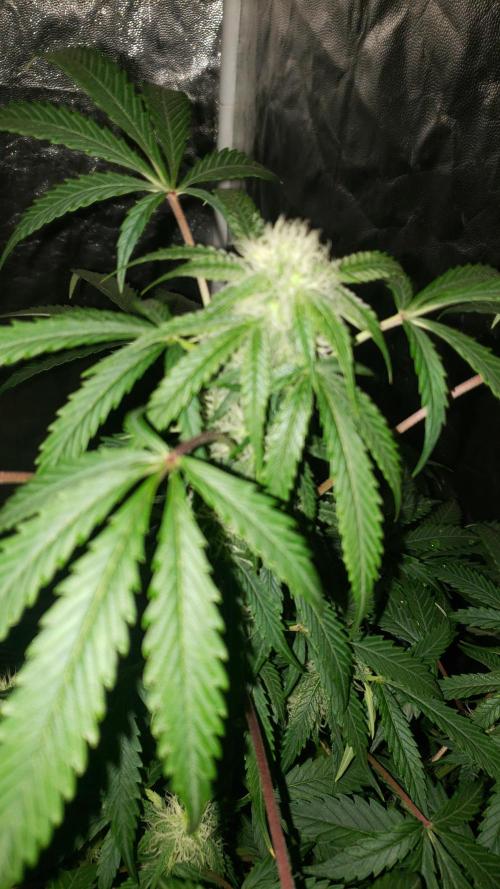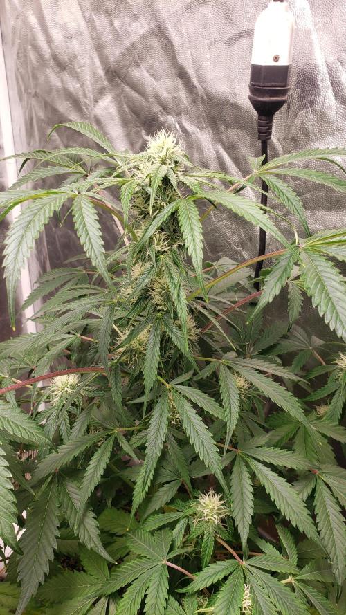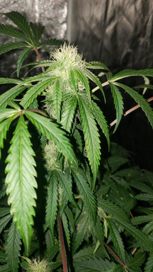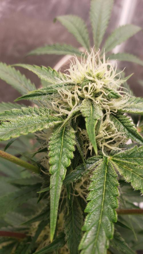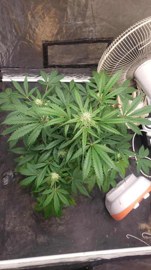 La planta se la ve bien, aunque nose si le faltara más agua pero he notado todos los días las hojas como caídas, pero bueno, los cogollos se van formando pero aun sin tanto olor.