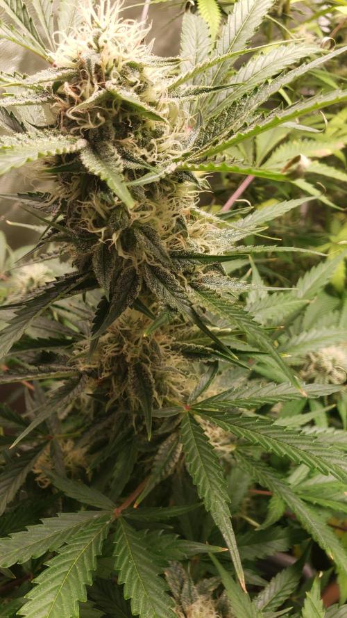 La planta se la ve bien, aunque nose si le faltara más agua pero he notado todos los días las hojas como caídas, pero bueno, los cogollos se van formando pero aun sin tanto olor.