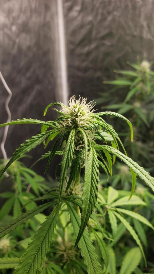En esta semana se estiro 20 cms, pero los cogollos aun están flacos y sin resina, pero en características generales esta bien.