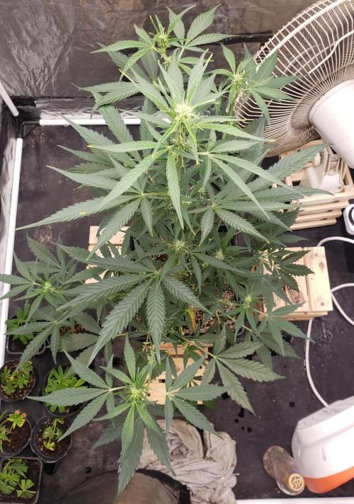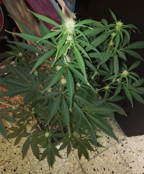 Hoy (17/09 ) ,dia 35, de la Strawberry Gorila Auto he quitado las hojas más grandes que tapaban las ramas bajas, espero que en este momento no estrese la planta.
