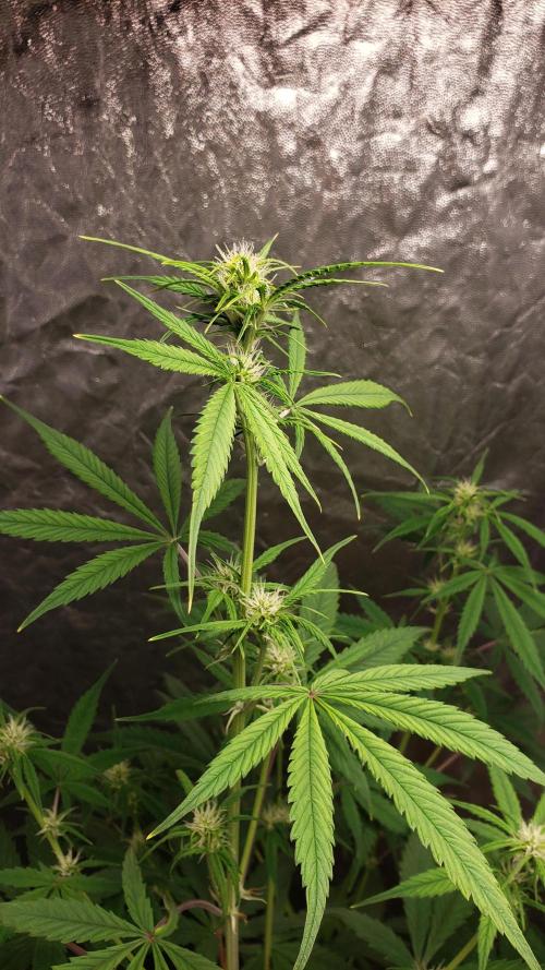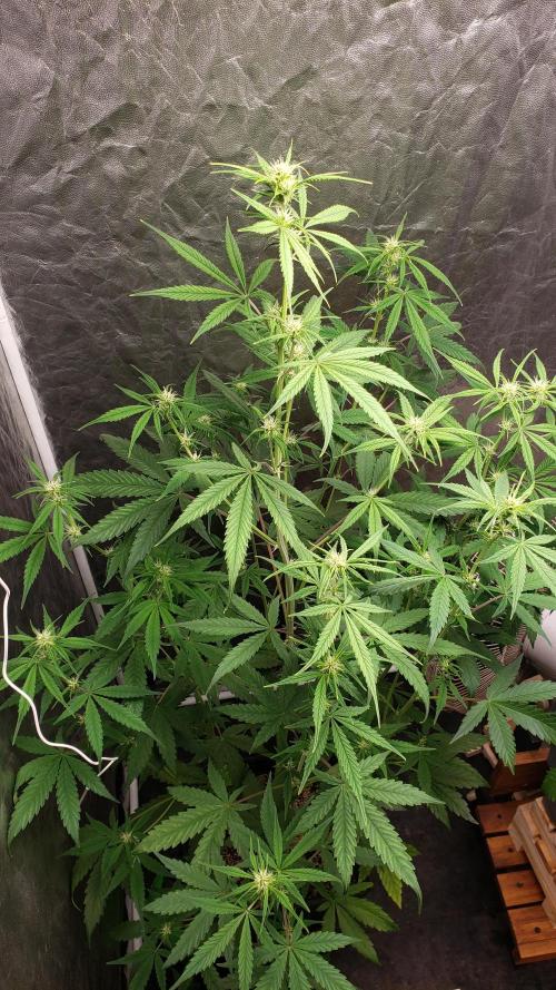 La planta ha crecido mucho esta semana 35 cm en 7 días, ha pegado el estirón, y también han mostrado sus preflores.