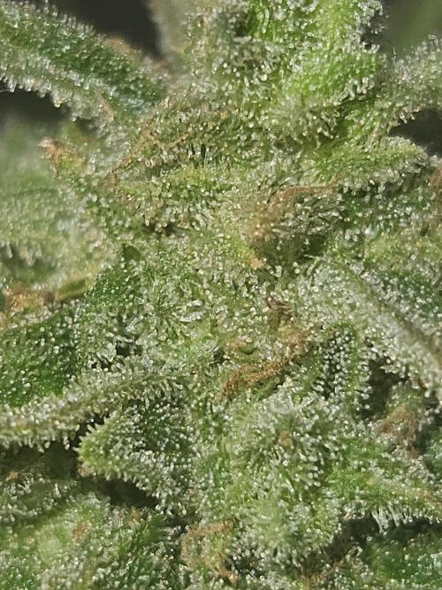 Mannirumpel420 Sie riecht wirklich einzigartig,ich bin gespannt wie sie schmecken wird.Ich bin mir unsicher wie weit sie ist,angegeben sind 45 Tage Blüte.Diese müssten bald erreicht sein.Die Trichome sind noch nicht bernstein also warte ich noch etwas.
