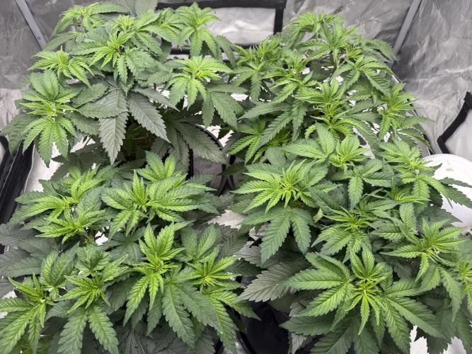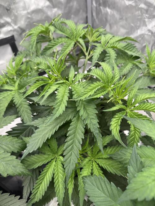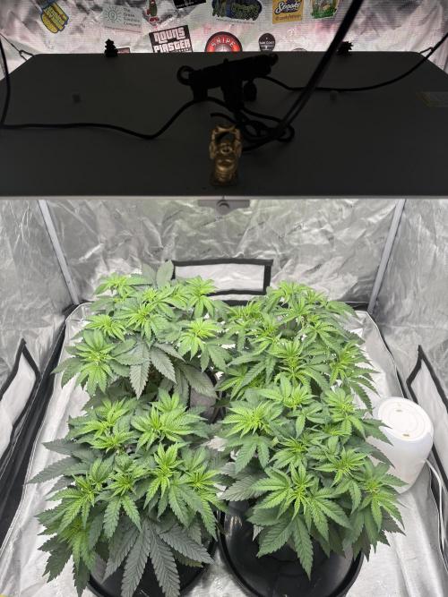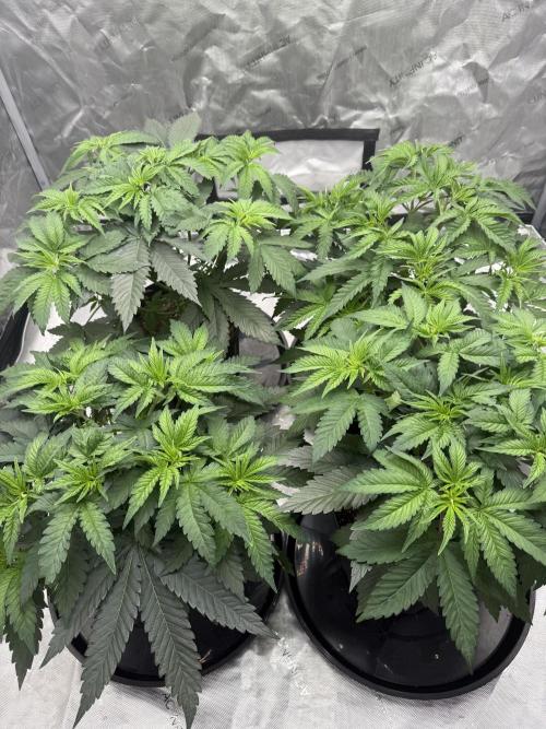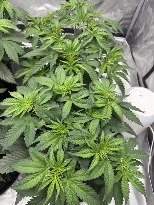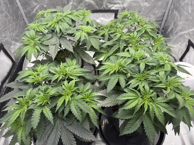 Grower_Tom Day 21: plants acclimated great to their new 1.5g homes, and have already rebounded. I’m currently running about 47% on the dimmer of the sf7000 @ 25” above canopy. All plants are very level making lighting easy thus far. They dried out a bit since the transplant watering so I’m back to feeding roughly 500ml to 700ml per day. That may change, I want to do a bottom feed next, so we’ll see how long that takes before I stay on the top feeding and implement a standard watering schedule.