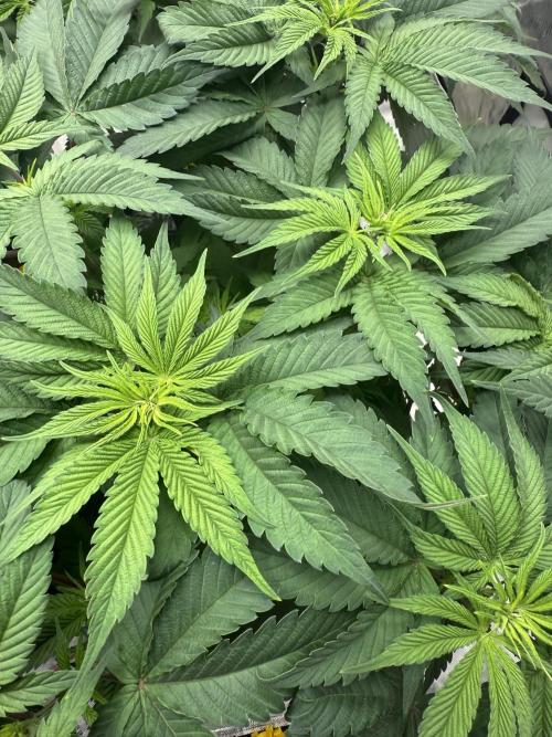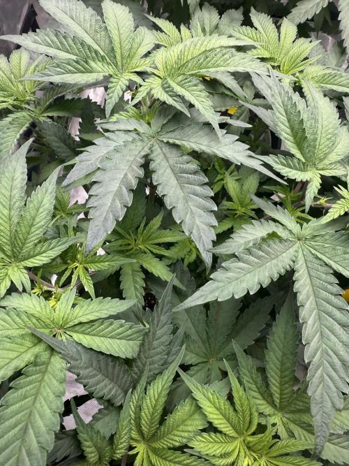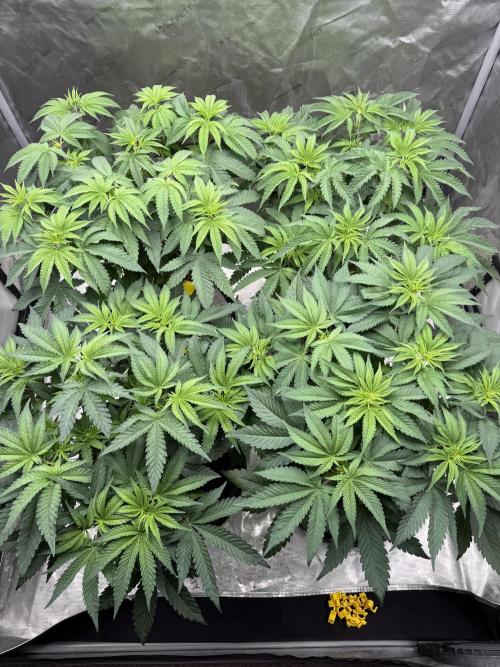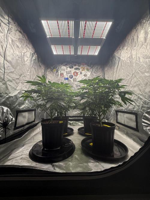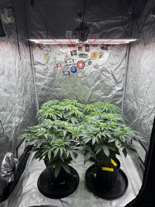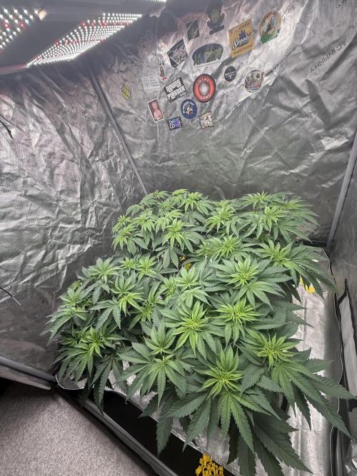 Grower_Tom Day 36: everything is going great! Thinking about light top dress of just the 4-4-4 to get me to transplant, I want to fill the tent out a bit more so I’m thinking two more weeks until I move up to 7 gallon pots. One thing I’ve noticed, is the plants that I removed the suckers off during the topping event, have thicker/bigger trunks. It actually very noticeable. I will probably carry this out to all my plants going forward in my growing adventures. In case you’re just getting here, 2 plants I left the sucker stems on and 2 I removed them when I topped and transplanted. Zero added stress by doing so and so far all I see is gains. We will see what happens during flower though. The 2 with the suckers (first set of branches) left on, I have trained to be level with all other top colas. I feel like the canopy has stayed pretty flush, one plant is an inch shorter than the rest. This week has been brought to you by the one and only Busey the beaut! Haha cheers!