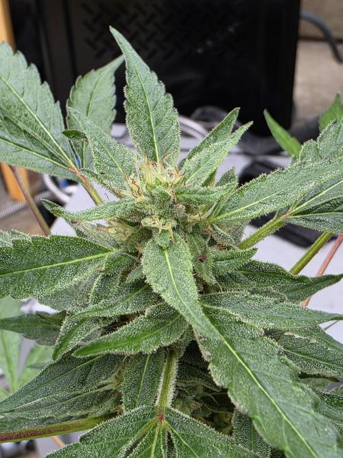 GothBotanical This week marked the true start of early flower for the outdoor girls. Bud sites began to form across all three plants, with fine white pistils just starting to appear at the tops. The 5-gallon plant showed the earliest transition, while the two 3-gallon pots lagged slightly behind but followed the same pattern by the end of the week. Overall size remained compact — they’re still small, with only modest stretch so far. Color stayed light to medium green, a sign they’re still settling into the bloom phase and pulling nutrients upward. Weather was warm and humid at times, especially after light rain early in the week, so you kept airflow up and sprayed Lost Coast Plant Therapy around Sept 30 and Oct 2 as part of your pest-prevention routine. No new top-dress or compost tea this week; they’re still feeding off previous amendments while roots adjust to flower demand. Week 7 was a quiet transition phase — pistils popping, structure tight, and the first real signs that flowering has begun.