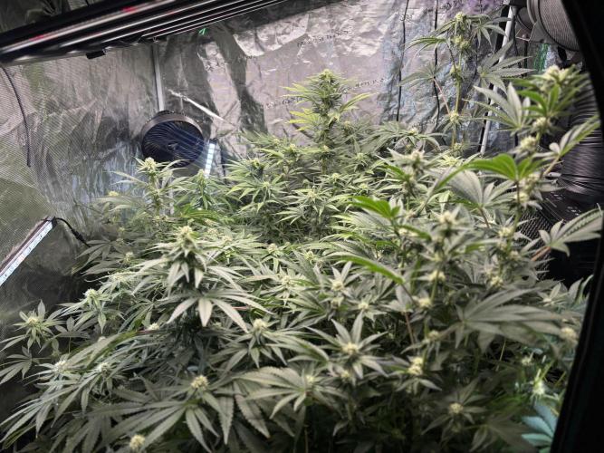 Crop_Top This past week was a busy one. Put a lot of work into the grow space and prepping them to switch. Moved over to the 5x5 tent and set up the netting. Went through a lot of defoliating spread out through the week to make sure it went as stress free for the plants as possible and then lollipopped the plant before changing over to