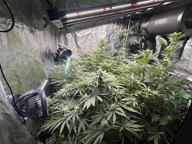 I trimmed up the plants a little more to try and increase airflow and also pulled out the light controller and ran it outside the tent to help with temps. The 1st couple days of flowering I ran into an issue as my temperature probe went out and caused my AI controller to not be operable so had to do things manually for the first few days. Ended up splicing some wiring and got things working (ghetto but worked lol) until my new cord arrived.